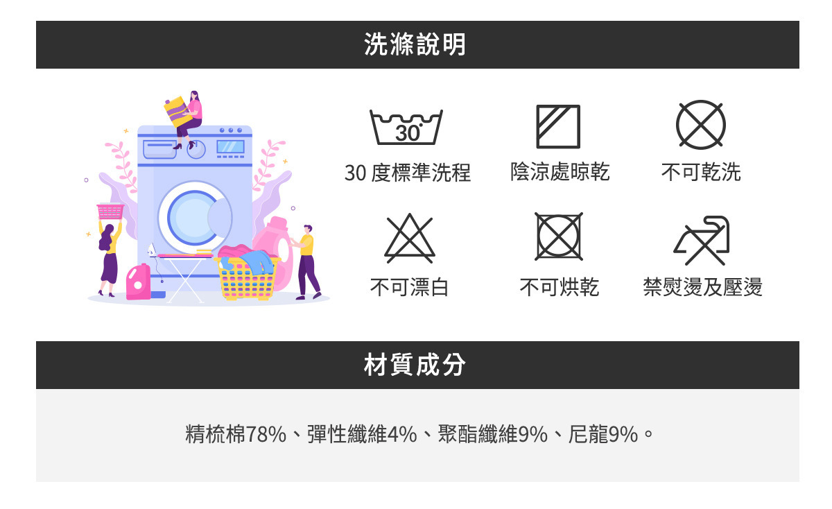 A.此襪款: 精梳棉78%、彈性纖維4%、聚酯纖維9%、尼龍9%。