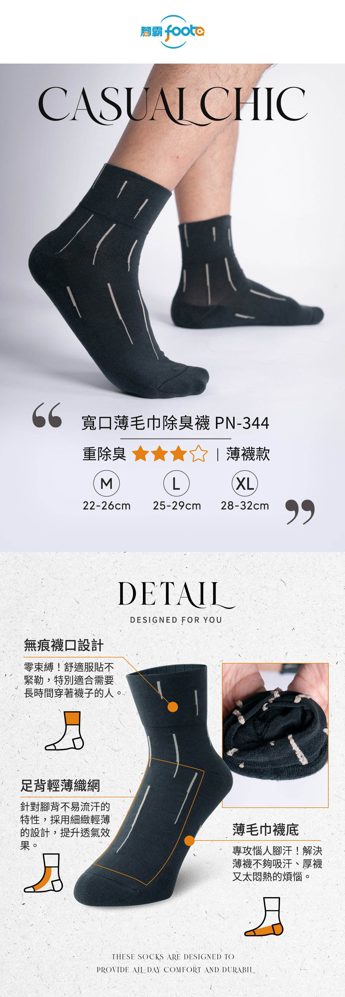 A. 腳霸的每一雙襪子,雖然都是除臭襪,卻會因為吸汗能力不同,除臭效果也會有差別!腳霸特別將每雙襪款分為「四個除臭等級」,讓你能一眼看出每雙襪款的除臭力是不是能滿足你的需要!而「重除臭」是腳霸襪款裡「除臭效果第二強」的等級,雖然相較於「強除臭」稍弱一點,除臭效果依然很優異;如果你的流汗量偏多、又不習慣穿著三毛圈襪底的厚襪子,最推薦你選擇這款!