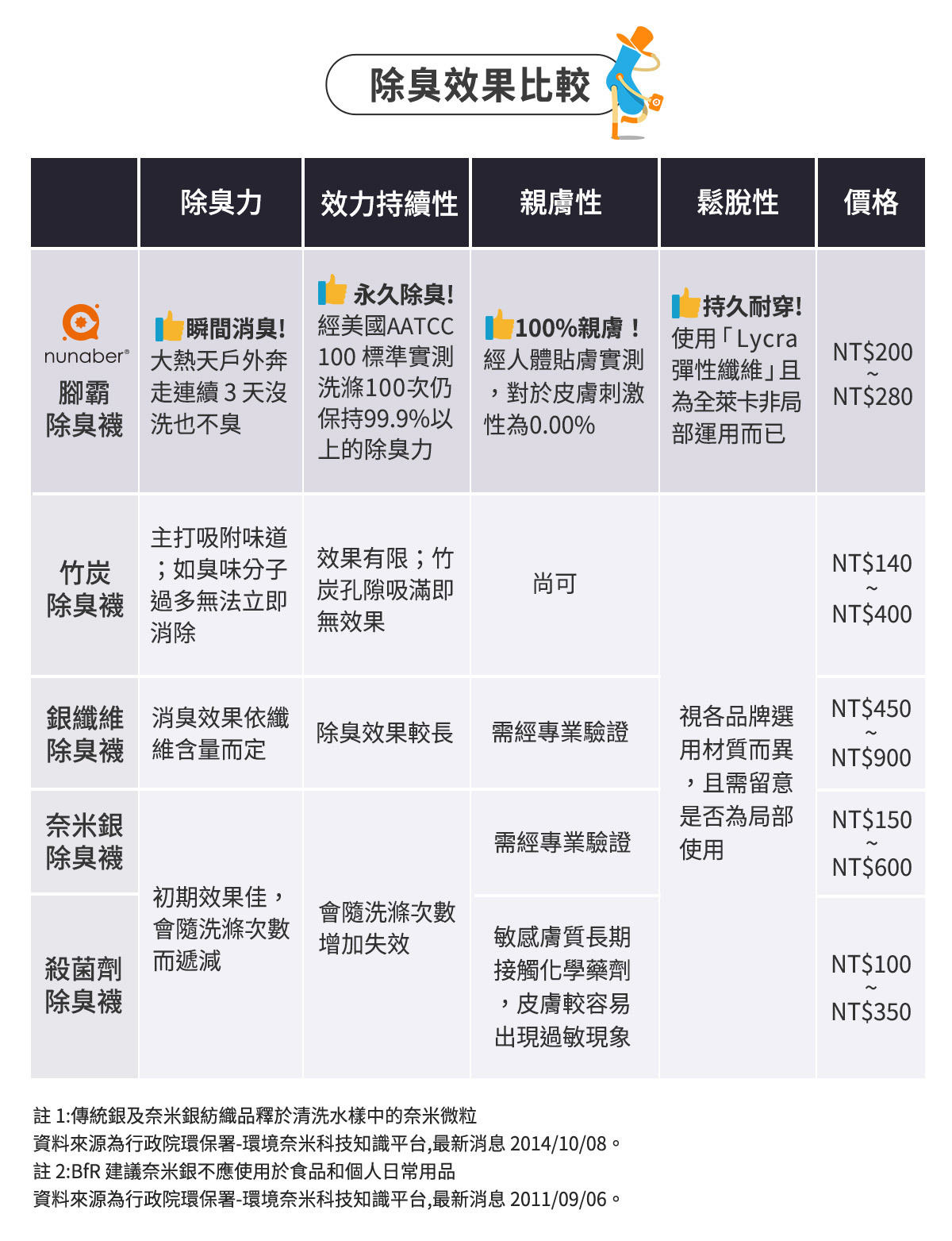 A. 腳霸的每一雙襪子,雖然都是除臭襪,卻會因為吸汗能力不同,除臭效果也會有差別!腳霸特別將每雙襪款分為「四個除臭等級」,讓你能一眼看出每雙襪款的除臭力是不是能滿足你的需要!而「中除臭襪款」的特性是屬於「有一點厚度的薄襪」,吸汗效果沒有厚襪那麼強、除臭效果也會因此比較弱,如果你想選擇這雙襪款,又有比較強的除臭需求,建議要搭配「除臭鞋墊」使用喔!