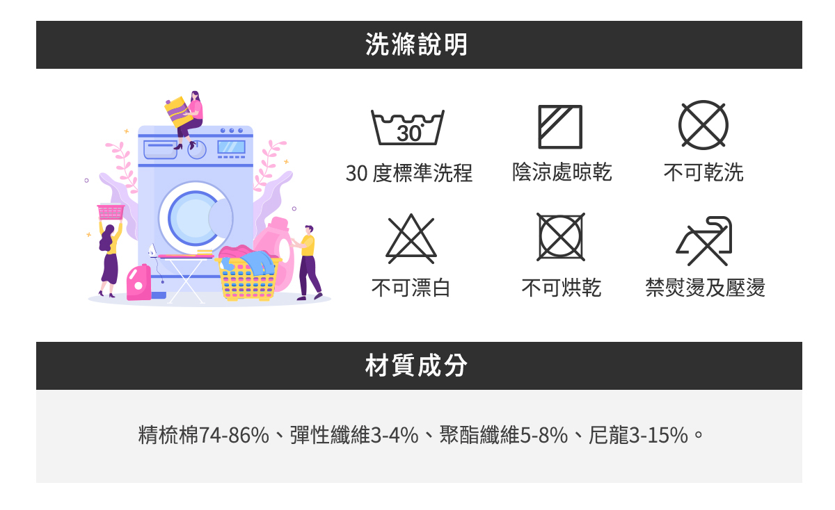A.此襪款: 精梳棉74-86%、彈性纖維3-4%、聚酯纖維5-8%、尼龍3-15%。