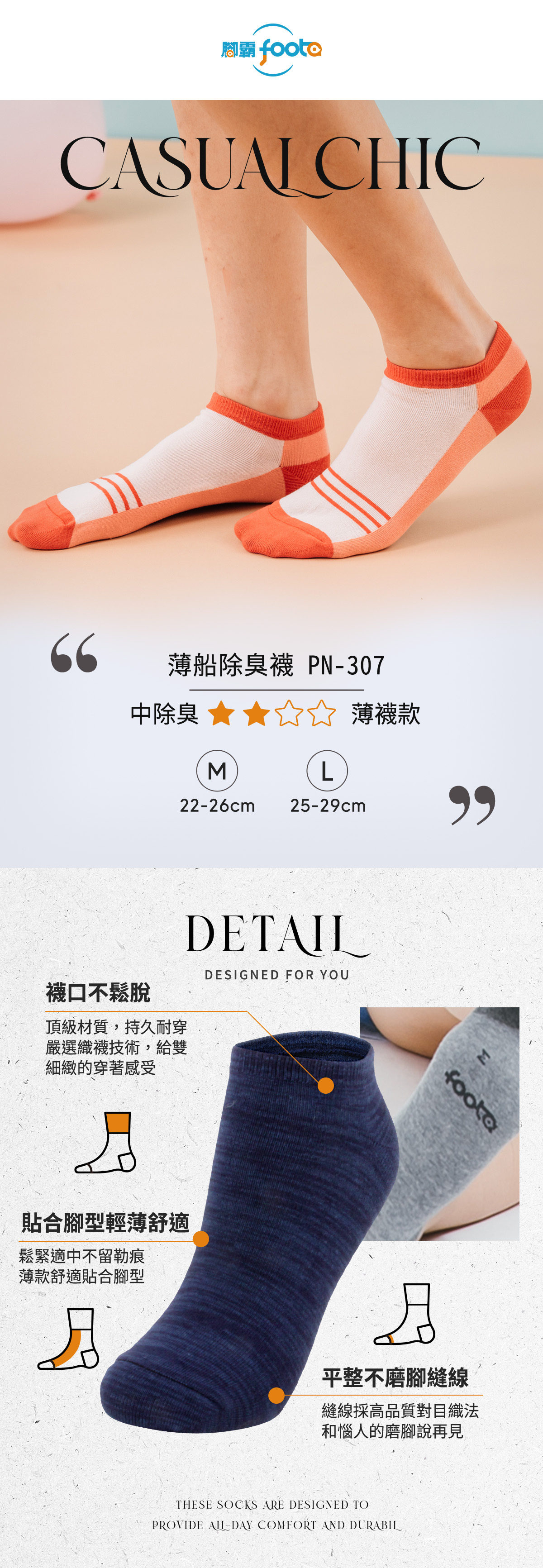 A. 腳霸的每一雙襪子,雖然都是除臭襪,卻會因為吸汗能力不同,除臭效果也會有差別!腳霸特別將每雙襪款分為「四個除臭等級」,讓你能一眼看出每雙襪款的除臭力是不是能滿足你的需要!而「輕除臭襪款」的特性是屬於「最薄的薄襪款」,能吸收的汗水有限,適合日常穿搭使用,如果你想選擇這雙襪款,又有比較強的除臭需求,請一定要搭配「除臭鞋墊」使用喔!