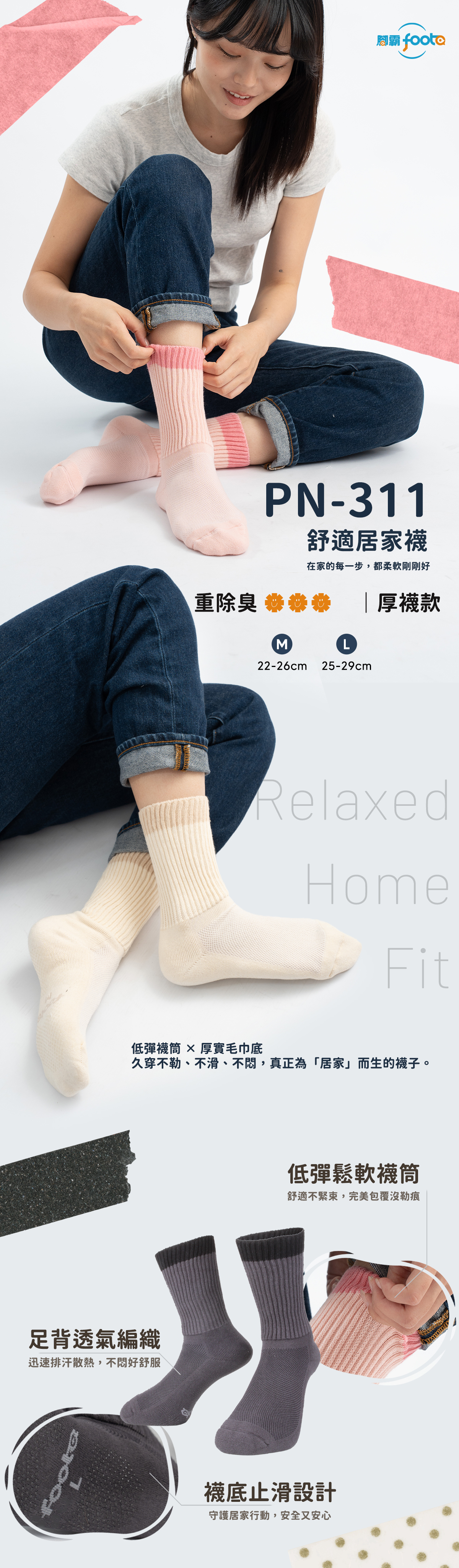 .襪底止滑設計,守護居家行動安全