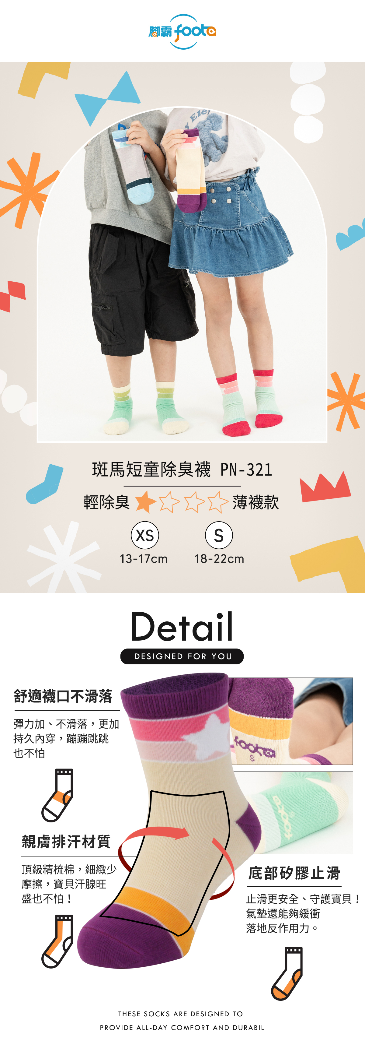 絕版品-斑馬短童除臭襪_桃花粉XS號 (PN-321)