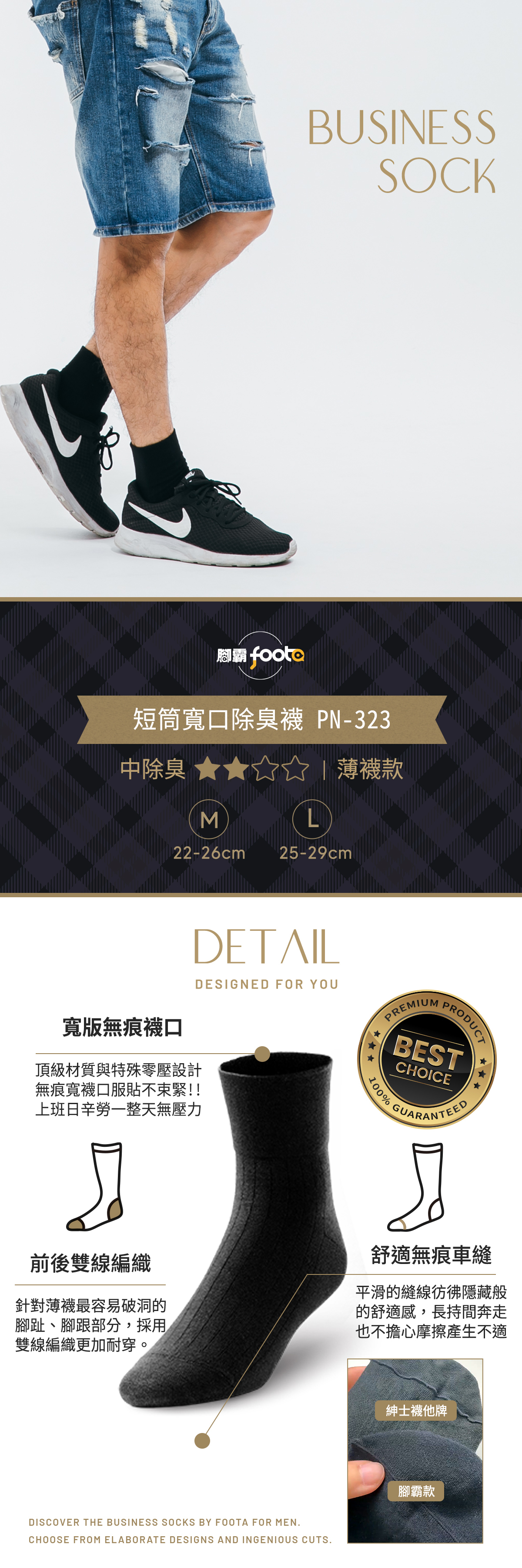 A. 腳霸的每一雙襪子,雖然都是除臭襪,卻會因為吸汗能力不同,除臭效果也會有差別!腳霸特別將每雙襪款分為「四個除臭等級」,讓你能一眼看出每雙襪款的除臭力是不是能滿足你的需要!而「輕除臭襪款」的特性是屬於「最薄的薄襪款」,能吸收的汗水有限,適合日常穿搭使用,如果你想選擇這雙襪款,又有比較強的除臭需求,請一定要搭配「除臭鞋墊」使用喔!