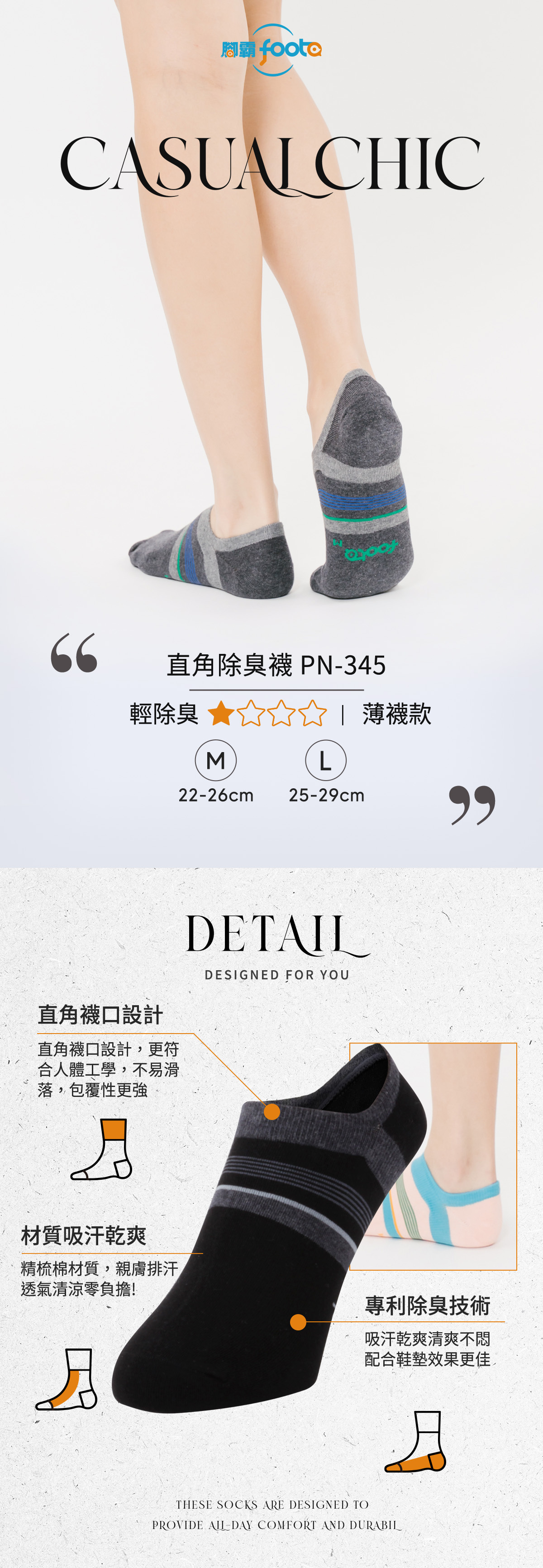 A. 腳霸的每一雙襪子,雖然都是除臭襪,卻會因為吸汗能力不同,除臭效果也會有差別!腳霸特別將每雙襪款分為「四個除臭等級」,讓你能一眼看出每雙襪款的除臭力是不是能滿足你的需要!而「輕除臭襪款」的特性是屬於「最薄的薄襪款」,能吸收的汗水有限,適合日常穿搭使用,如果你想選擇這雙襪款,又有比較強的除臭需求,請一定要搭配「除臭鞋墊」使用喔!