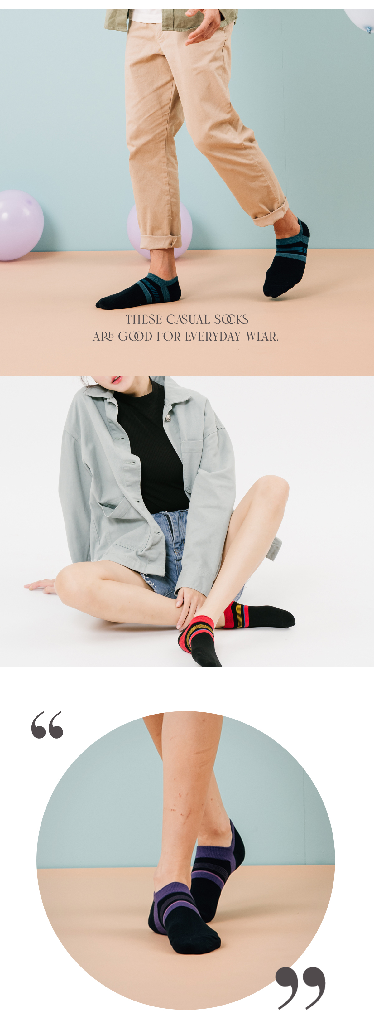 A. 此襪款為時尚休閒用襪,因為襪款較薄,用來做穿著搭配,在需要久坐、進行較不劇烈的休閒活動時,最適合使用!鞋款部分,建議搭配穿著起來較合腳的鞋款;如果鞋子和襪子之間縫隙太大、容易彼此衝撞摩擦,會加速襪子耗損的速度,請稍稍留意唷!